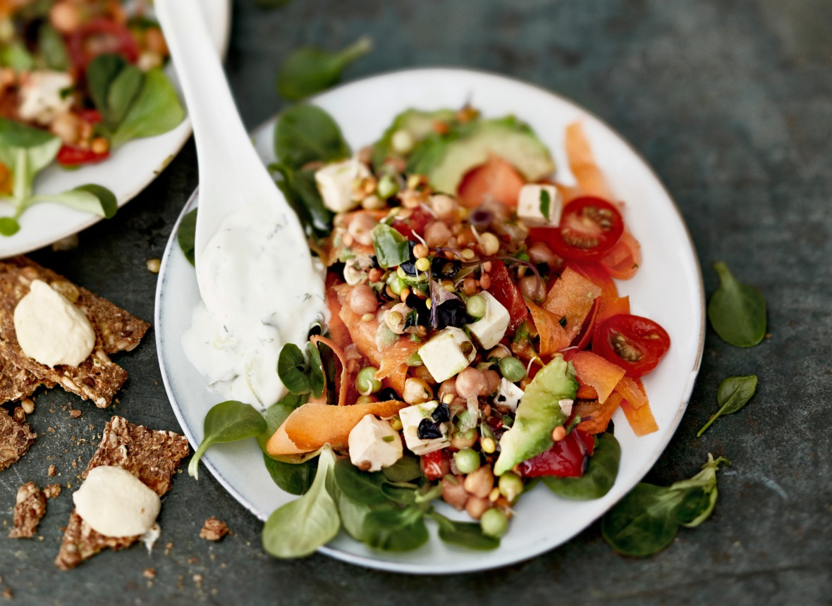 Joskus on ok oikaista, salaatissakin. Tämän raikkaan herkun pohjana on käytetty Stockmann Mealsin valmista kikherne-fetasalaattia. Kikherneet ovat loistava kasviproteiinin lähde, lisäksi niistä saa kuituja ja rautaa.