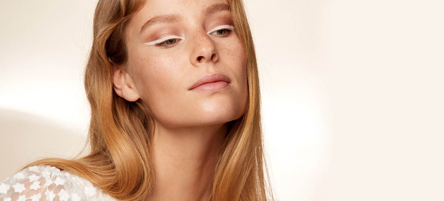 Kesän kaksi silmämeikkitrendiä ovat tässä: kirkkaat rajauskynät ja metallinhohtoiset luomivärit. Ne toimivat myös samassa meikissä. Raikas rajaus kirkastaa katseen ja tuo pronssisen luomivärin hienosti esiin.