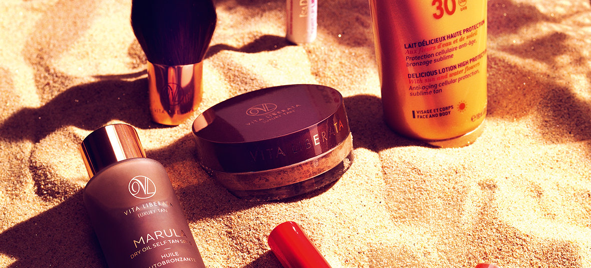 Aurinkotuote on rantapäivän ehdoton ykkönen, jolla suojaat ihoa vahingoittavilta säteiltä ja edistät kaunista rusketusta. Jos auringossa makoilu ei kiinnosta, saat upean pronssisen hehkun myös itseruskettavilla tuotteilla.
